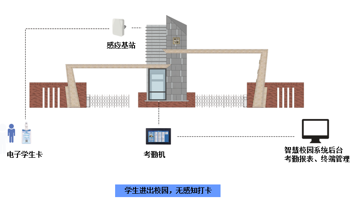 學生攜帶 RFID智能學生卡進出校門口時,就被安裝在校門口處的兩個讀卡器遠距離讀取,讀卡器把讀到的信息傳給考勤管理主機。考勤管理主機通過兩個讀卡器讀取到的先后順序,加上相關(guān)過濾算法,來判斷學生的進出,再將生成最后的考勤記錄信息通過GSM/CDMA網(wǎng)絡(luò)發(fā)送給云端平臺,最后經(jīng)過云端平臺通過短信或者APP將考勤信息發(fā)給所對應家長。