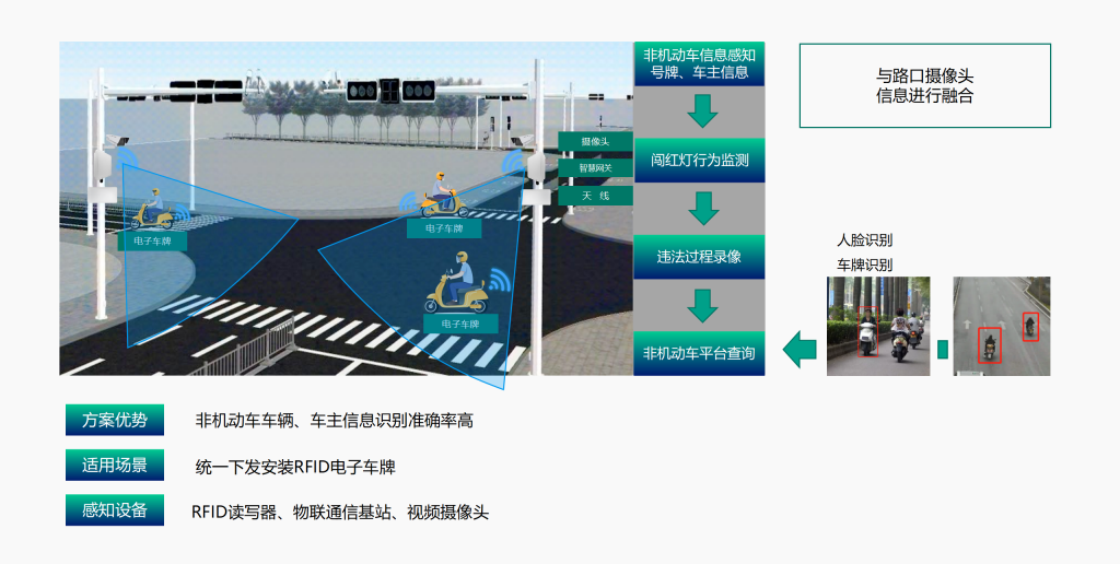 任聯(lián)電動自行車違法管控方案采用“物聯(lián)網(wǎng)RFID+視頻”融合技術(shù),將電子車牌、軌跡追蹤、移動車載定位等產(chǎn)品,應(yīng)用與城市電動車防盜、電動車違章、電池入戶、充電安全等綜合管理。對電動自行車闖紅燈、逆行、占用機(jī)動車道等7類違法行為進(jìn)行自動取證,同時(shí)對車輛身份實(shí)現(xiàn)精準(zhǔn)認(rèn)定,為執(zhí)法處罰提供有力依據(jù)。全面提高交通管理者的管理能力,提升廣大公眾的出行體驗(yàn),增強(qiáng)交通數(shù)據(jù)運(yùn)營服務(wù)能力。核心產(chǎn)品介紹如下: