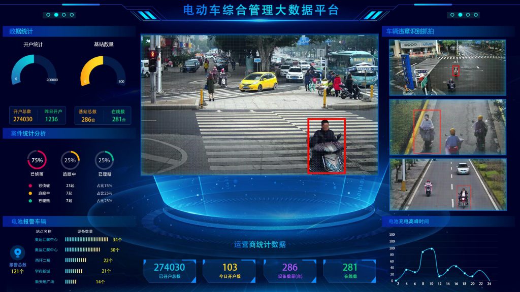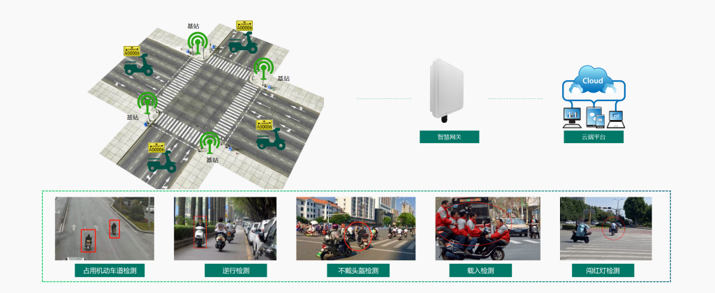 電動車車輛管理平臺包含多種車輛違法AI檢測算法,其中包括闖紅燈、騎快車道、停車越線、未戴頭盔等7種非機(jī)動車違法識別算法。通過AI自動發(fā)現(xiàn)道路異常情況,再由平臺推送,城市管理者可實(shí)時(shí)查看現(xiàn)行交通態(tài)勢,及時(shí)應(yīng)對突發(fā)情況。