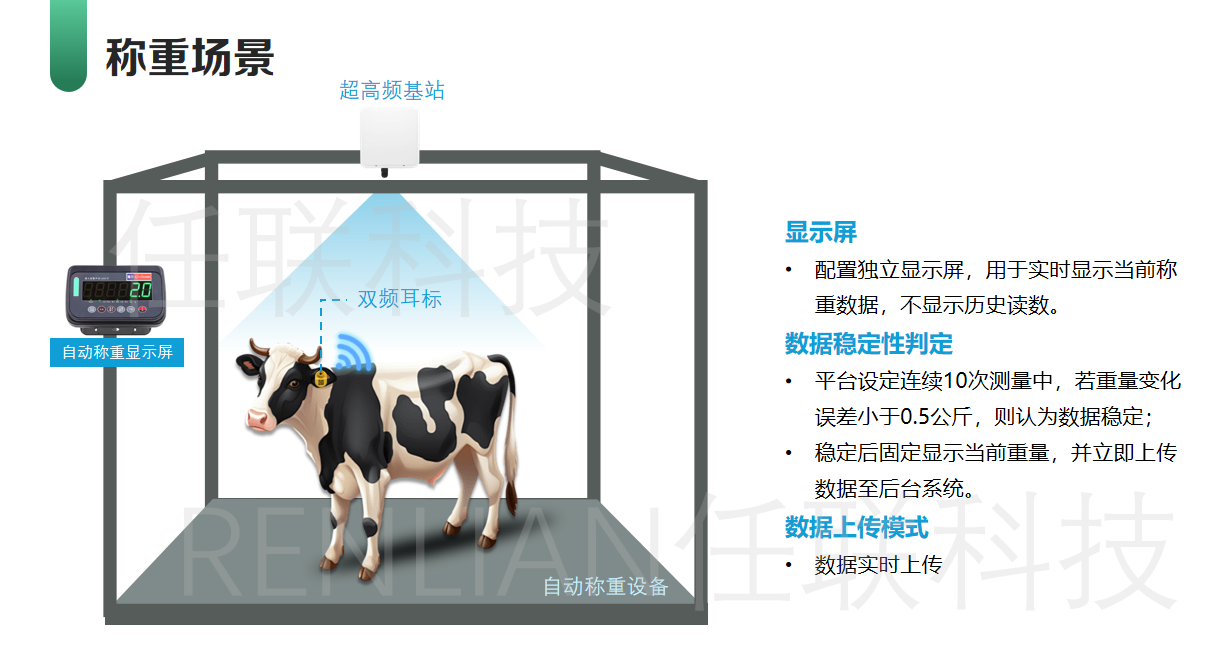 幾千元就可以改造傳統(tǒng)地磅?如何低成本擁有智能稱重稱?采用我們的智能耳標,可實現(xiàn)自動讀取牛只信息,自動上傳牛的重量,無需人員操作。而且可以在平臺上對牛的年齡、增重數(shù)量、增重時間、日期都可以做出分析比較。幫助畜牧主掌握哪些牛是優(yōu)質牛,淘汰劣質牛。把牛的重量,與喂養(yǎng)管理相結合對比,指導需滿足及時調整飼料配方或者喂養(yǎng)策略。